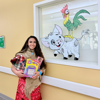 Last month, Moana joined our team, and we couldn't be happier! What a great addition to Spider-Man, Stitch, and Belle! On this visit, volunteers helped our friends deliver Winter Blankets for the Christmas season. It’s a delightful experience to bring joy to children in the hospital during this holiday season.